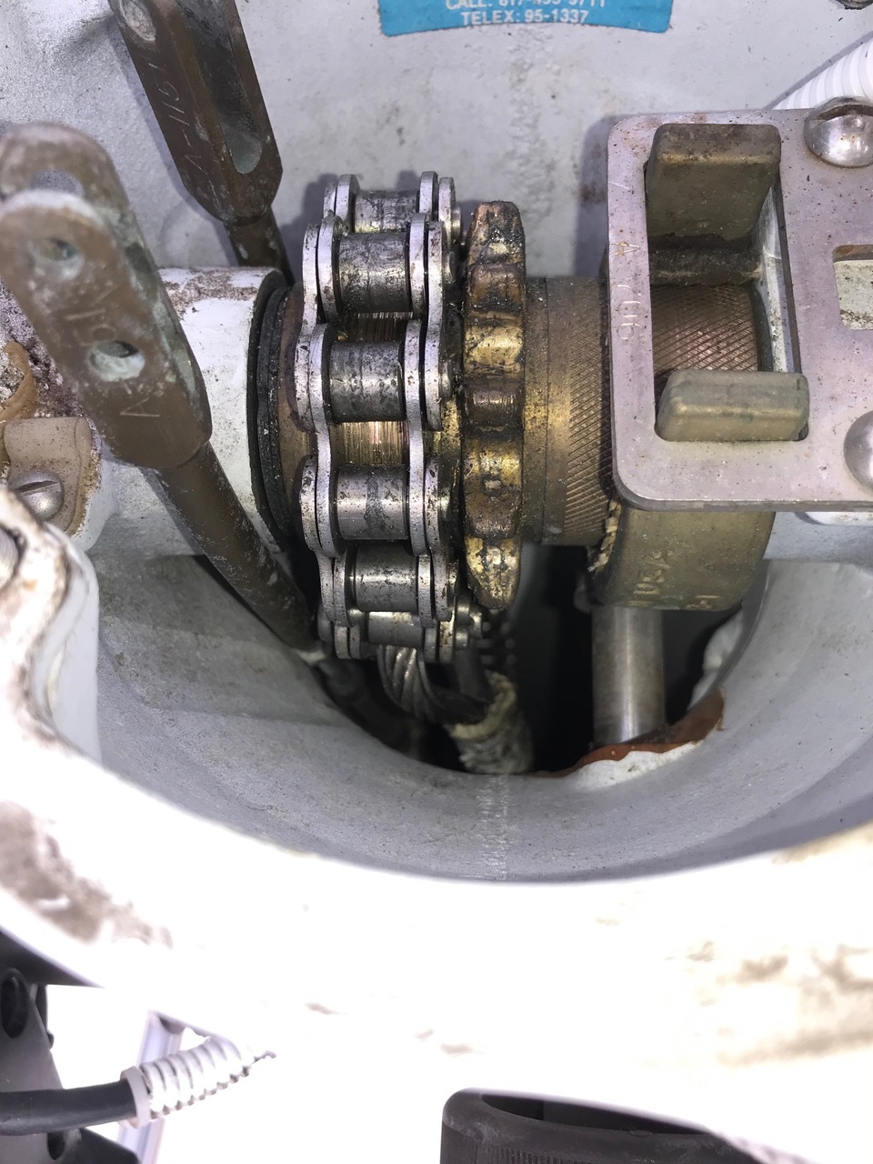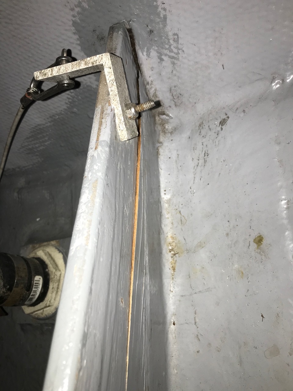 Attached here is a picture showing the current sad situation with my rudder stops. The pic is taken by leaning into the stbd lazarette. You can see there is a sturdy stopper mounted on the very front, underside of the quadrant. This is stopped by aluminum plate tabs attached to and protruding above the gussets supporting the rudder post housing. On the closer, starboard side you can see this tab is mounted on the aft side of the gusset, with an aluminum reinforcing plate on the foreside. On the port side, you can see that this is reversed, the stop tab is mounted on the front. I did move this port side stopper some years ago, after an incident where I was distracted while backing up under power and let go of the wheel, and it crashed, and hopped over the port stopper. It was bent back, low enough for the quadrant stopper to jump over it. In my wisdom (?), I moved the stopper to the front side hoping this would be a better solution.